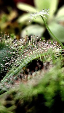Etobur bitki koleksiyonumun en büyüleyici üyelerinden biri olan Drosera (Güneş Gülü), doğanın en zarif avcılarından biri! Parıldayan yapışkan damlacıklarıyla böcekleri kendine çeken bu bitki, avına temas ettiğinde harekete geçerek yapraklarını yavaşça içe doğru kıvırır ve sindirim sürecini başlatır. Besin açısından fakir topraklarda hayatta kalmasını sağlayan bu adaptasyon, bitkilerin düşündüğümüzden çok daha aktif ve stratejik canlılar olduğunu gösteriyor. Drosera’yı gözlemledikçe, doğanın karmaşıklığına ve evrimin yaratıcılığına hayran kalmamak elde değil!
