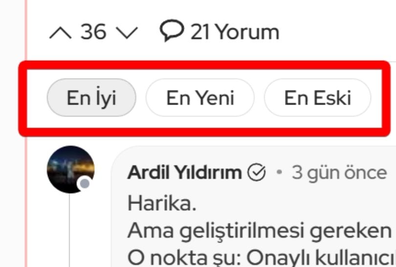 Evrim Ağacı Sosyal'de yorumlara şöyle bir sıralama aracı getirdik. Uzun sohbetleri biraz daha kolaylaştırmasını umuyoruz. ♥