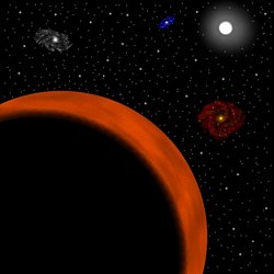 Arkaplandaki yıldızlar bu gezegen sistemine en yakın yıldızlardır. Yıldızların çoğu resimde zaten soluk tasvir edilmiştir. En yakın belirgin yıldız, resimde görülen gezegenin ana yıldızıdır.