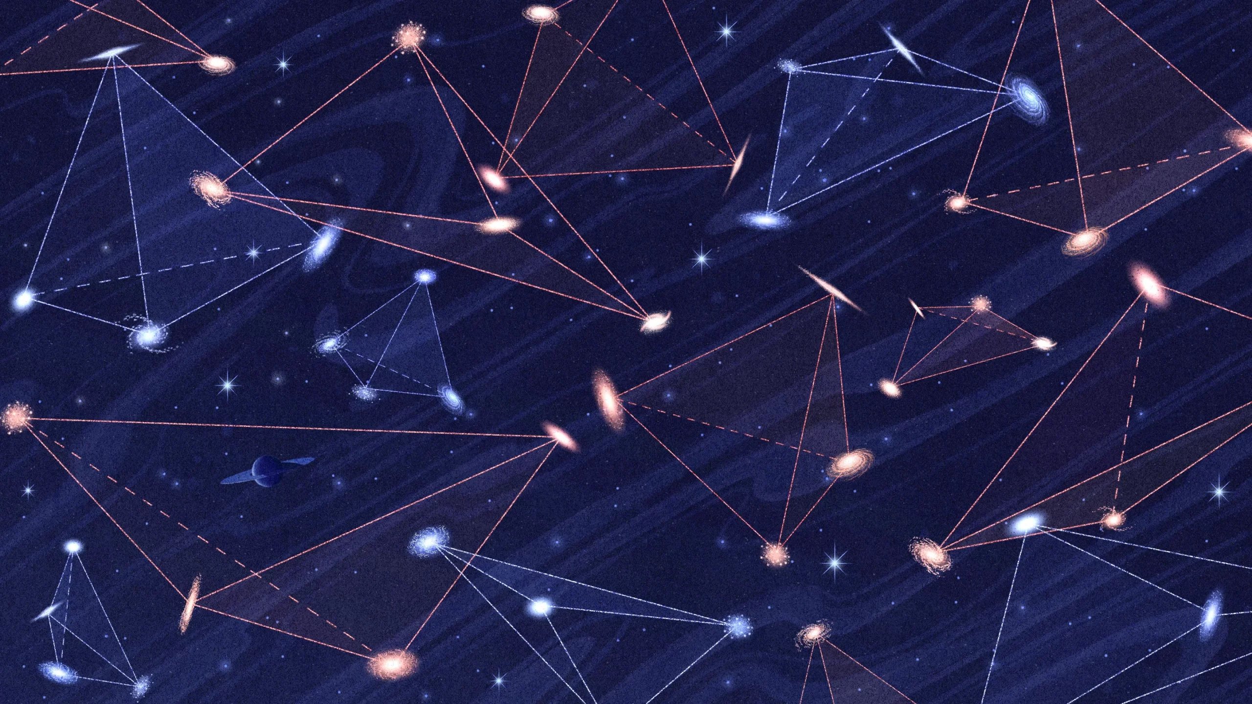 Fizikçiler, gökyüzündeki galaksilerin dizilişlerinde çarpıcı bir asimetri tespit ettiklerine inanıyorlar. Doğrulanırsa, bulgu Büyük Patlama sırasında işleyen bilinmeyen temel yasaların özelliklerine işaret edecek. Sanki kozmik bir Noktaları Birleştir oyunu oynuyormuş gibi, araştırmacılar dört gök ada kümeleri arasında çizgiler çizerek tetrahedra adı verilen dört köşeli şekiller oluşturdular.
