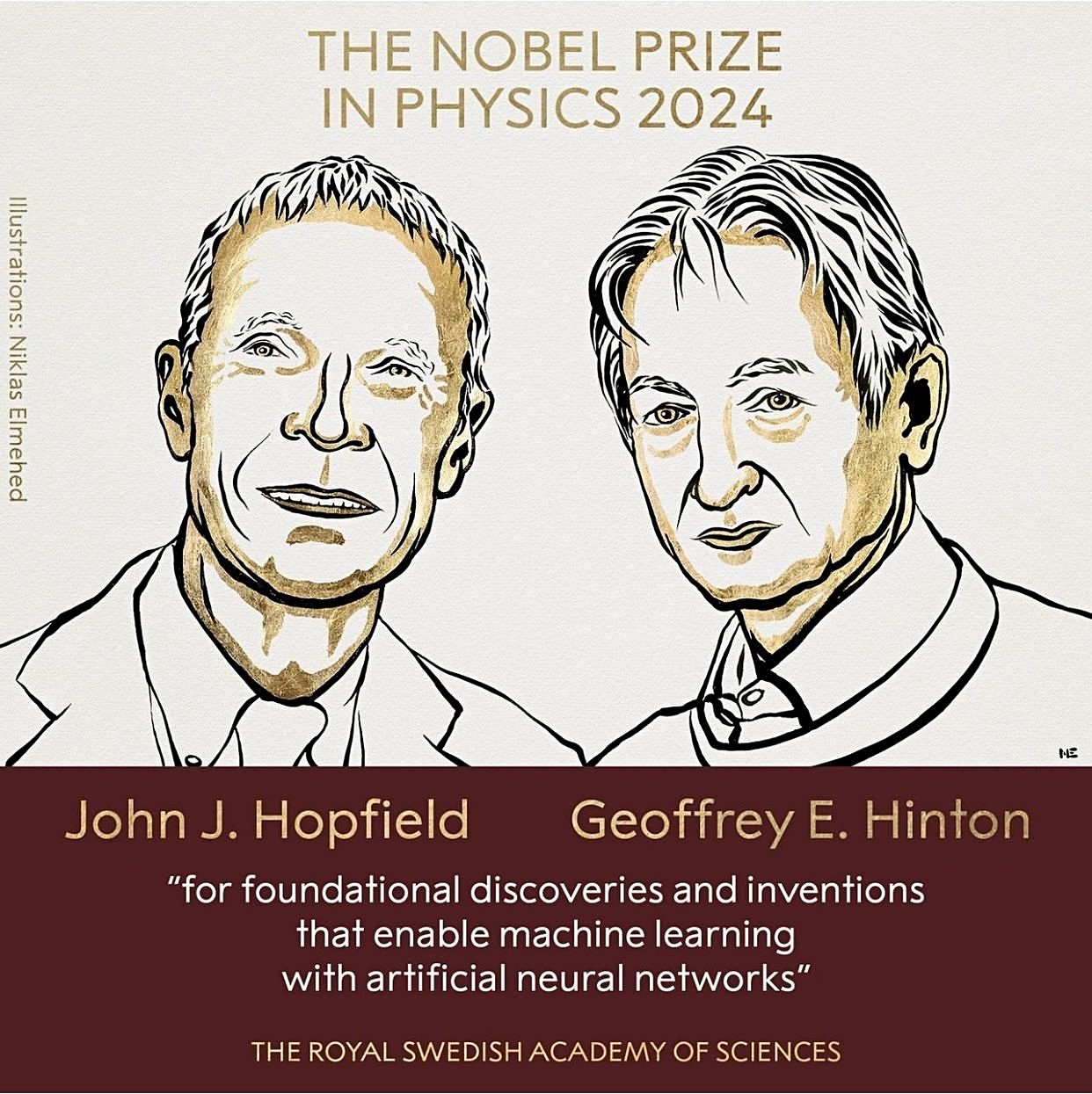 Gerçekten çok ilginç! 2024 Nobel Fizik Ödülü, fizikle neredeyse hiçbir alakası olmayan "makine öğrenmesi / yapay zeka / yapay sinir ağları" alanının modern babalarına (veya daha yaygın adıyla "vaftiz babalarına", "godfather") verildi. Bunun sebebi, muhtemelen bu devrimsel sahanın Nobel'e layık olması ama uygun bir Nobel kategorisinin bulunmaması. Dolayısıyla "yapay zekanın fiziğe yaptığı katkılardan ötürü" böyle bir şey yapıldığı söylenmiş; bu, epey tartışmalı olsa da... İlginç zamanlar yaşıyoruz.