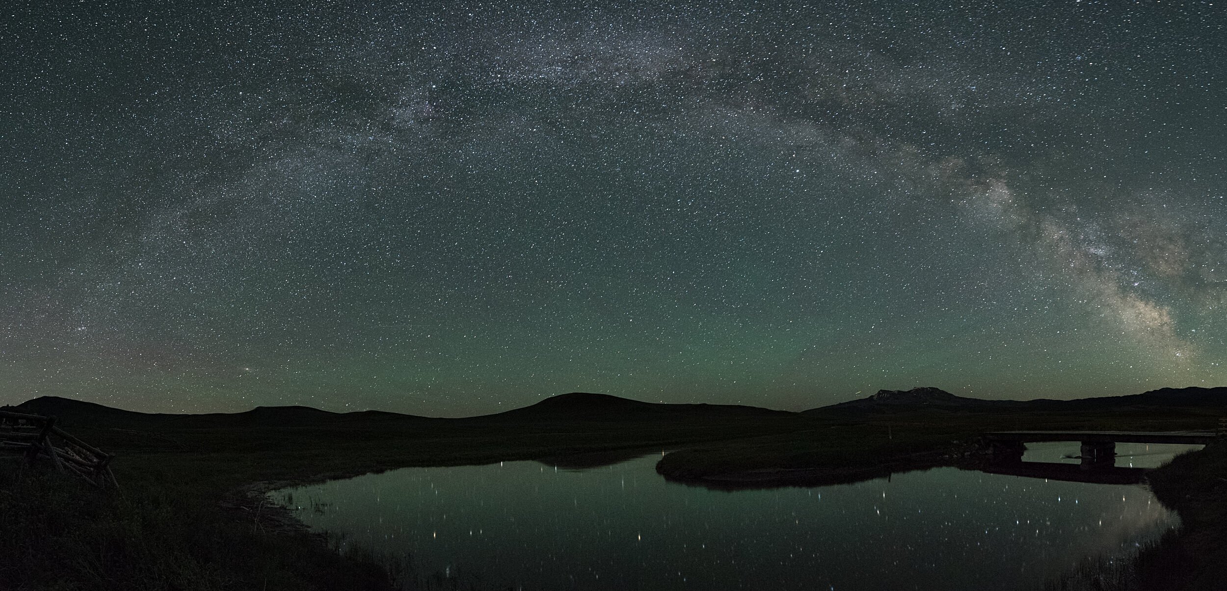 Milky Way panorama. Nikon D750 with a Nikon 14-24mm f/2.8 lens at 14mm. Seven stitched frames shot at 30 seconds, f/4, ISO 6400.