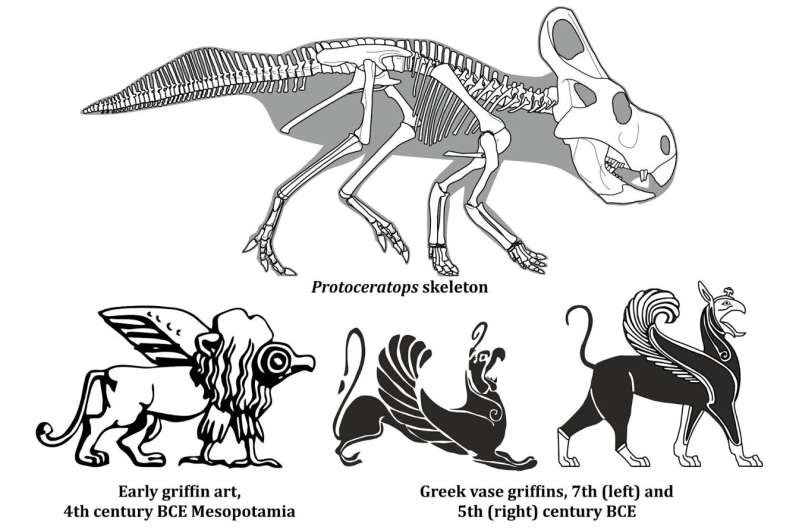 Portsmouth Üniversitesi'nden araştırmacılar, grifin efsanesinin dinozor fosillerinden esinlendiği iddiasını sorgulayan yeni bir çalışma yayınladı. Protoceratops fosillerinin antik altın arayıcıları tarafından keşfedildiği ve grifin mitolojisini etkilediği teorisi, coğrafi incelemeler, fosil kayıtları, fosillerin dağılımı ve sanatsal kaynaklar incelenerek çürütüldü. Çalışma, mitolojik yaratıkların her zaman fosil kaynaklı açıklamalara ihtiyaç duymadığını ve bazı popüler jeomitlerin spekülatif olabileceğini vurguluyor.