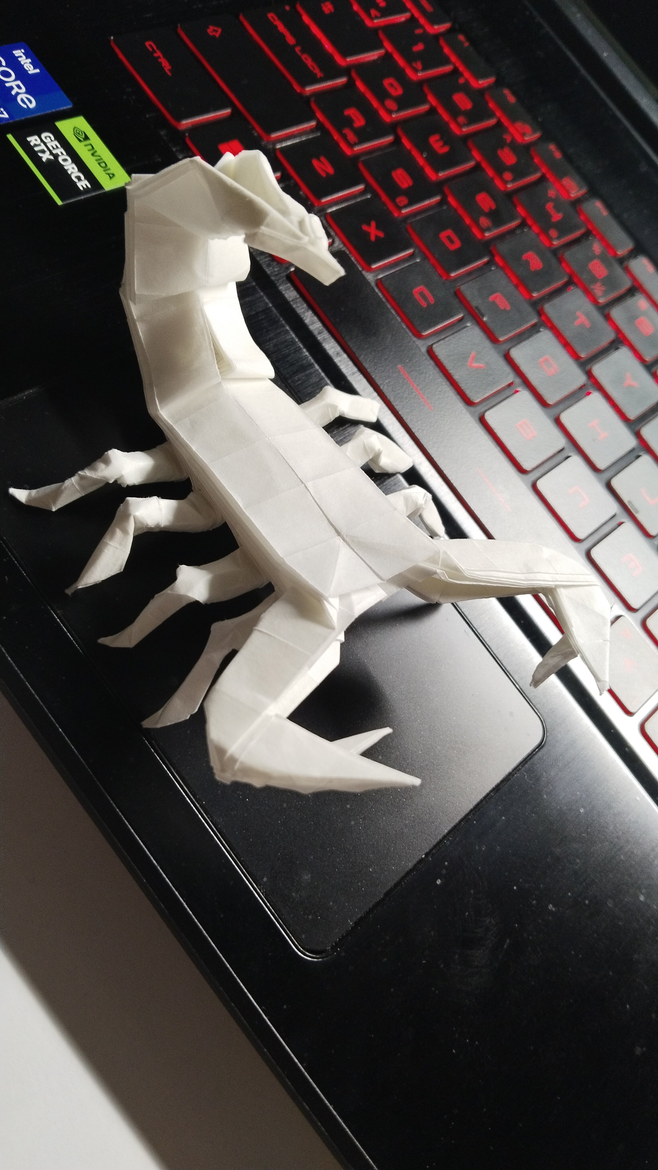Her mutfakta bulunan fırın kağıdı ile origami bir akrep. NASA'nın bile kullandığı origami sanatı ile bir kare kağıdı hiç kesmeden sadece katlayarak yapılmıştır.