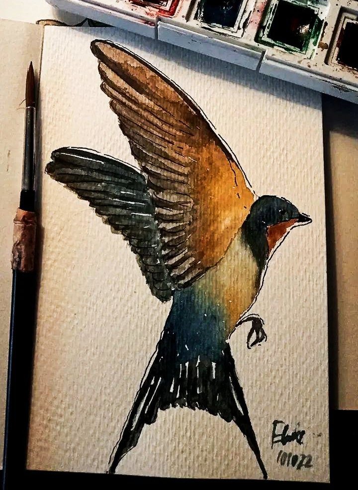 Hirundo rustica (Kır kırlangıcı) suluboya illüstrasyonum.
