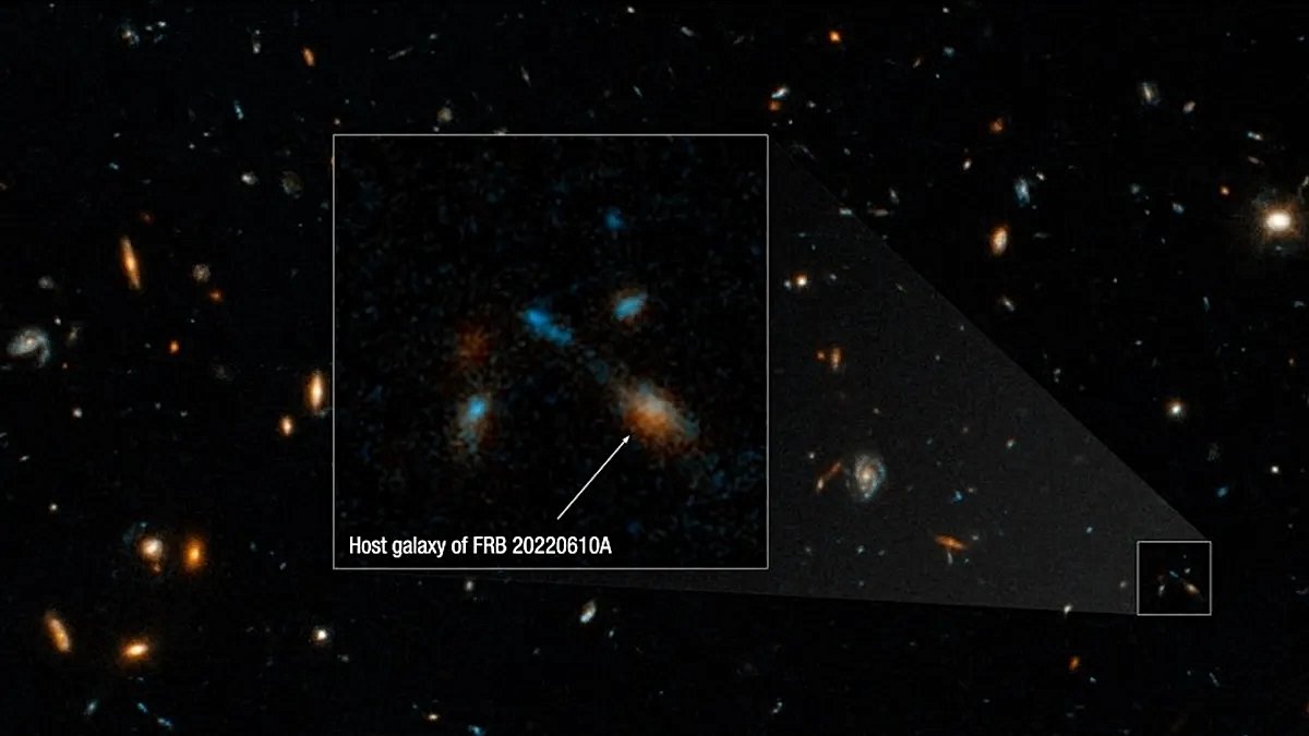 Hubble Uzay Teleskobu tarafından yapılan gözlemler, en parlak hızlı radyo patlamasının bir grup birleşmiş eski galaksiden geldiğini gösteriyor. Bu bulgu, çoğu hızlı radyo patlamasının tek bir galaksiden geldiği düşünülen bilinen durumun aksine astronomları şaşırttı. Patlama, 10 Haziran 2022'de Batı Avustralya'da tespit edildi ve Square Kilometer Array Pathfinder radyo teleskobu tarafından ilk kez kaydedildi. Hızlı radyo patlamaları, dünyanın farklı bölgelerindeki radyo teleskopları tarafından neredeyse her gün tespit edilen nadir olaylardır. Bu patlamalar, sadece bir saniyenin bir kısmını alırken, kısa süreliğine bile olsa bir galaksinin radyo emisyonlarını gölgede bırakabilir. 10 Haziran'daki patlama ise diğerlerinden daha güçlüydü. Şili'de yapılan gözlemler, patlamanın çok uzak bir kaynaktan geldiğini ve diğer hızlı radyo patlamalarından dört kat daha fazla enerji içerdiğini ortaya koydu.