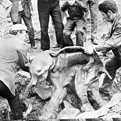 İki adam, 1977'de "Dima" adı verilecek genç bir mamutun Buzul devrinden bu yana iyi korunmuş bedenini çıkarıyor. Yaklaşık 40.000 yıl önce, 6-8 aylıkken ölmüş. Midesinde hala annesinin sütünden izler var.