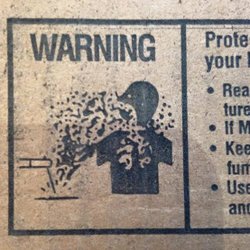 Ha bu arada, bu işaret, kaynak işlemi sırasında saçılan toksik gazlara karşı uyarıyor. Sol altta kaynak gösteriliyor.