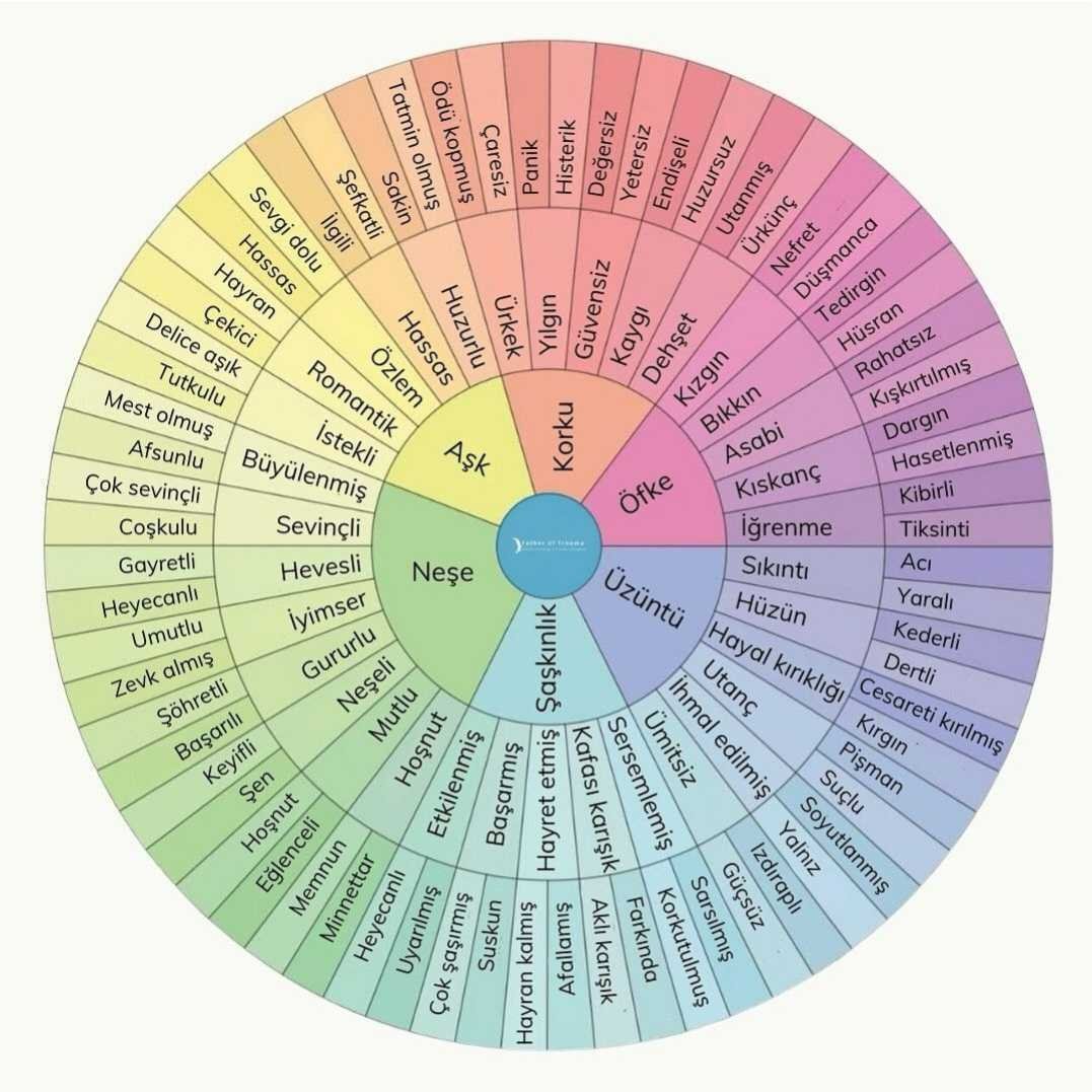 İnsanın duygularından haberdar olması çok önemli bir yetenek. Bilindiği üzere duygular ve düşünceler insanı oluşturur. Bunlara bir de değiştirilemez kök inançlar eklenir, kişi iyice sabitlenir, katılaşır. Beden bizlerle duygu ve hisler yoluyla haberleşir. Düşünceler ise zihnin dilidir. Düşüncelerin farkına varabilmek, dingin bir yapı ister. Fakat yerleşmiş kronik duygular buna izin vermez. Bu yüzden belki de çoğumuz için başlangıç olarak, ehil olmayan bu duyguları ifade etmekten geçer. Hislerinden düşüncelerine varan bu süreçte duygu çarkını kullanmak çok faydalı olur!