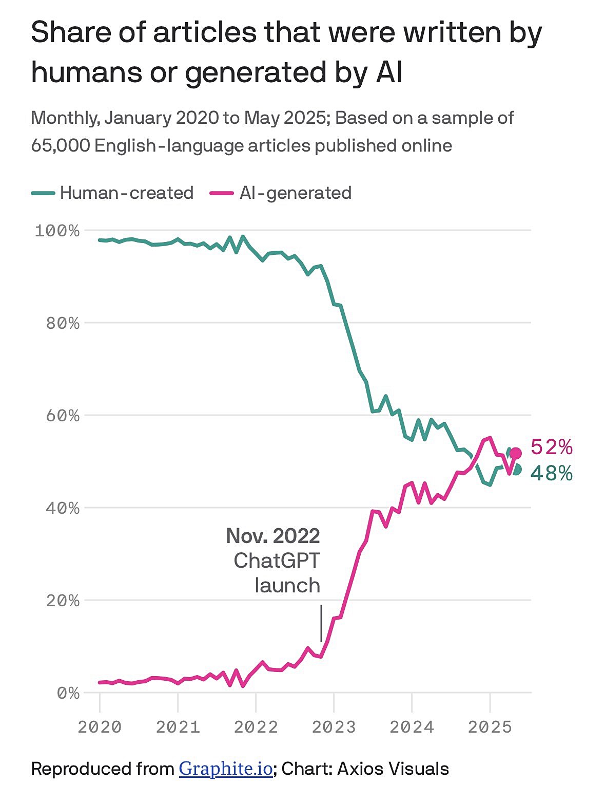 İnternette paylaşılan yazıların sadece %48'i insanlar tarafından yazılıyor. Zaman geçtikçe bu sayı %0'a yakınsayacak.