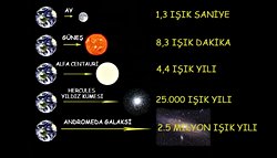 uzaklık arttıkça ışığın bize ulaşma süresi de artar.