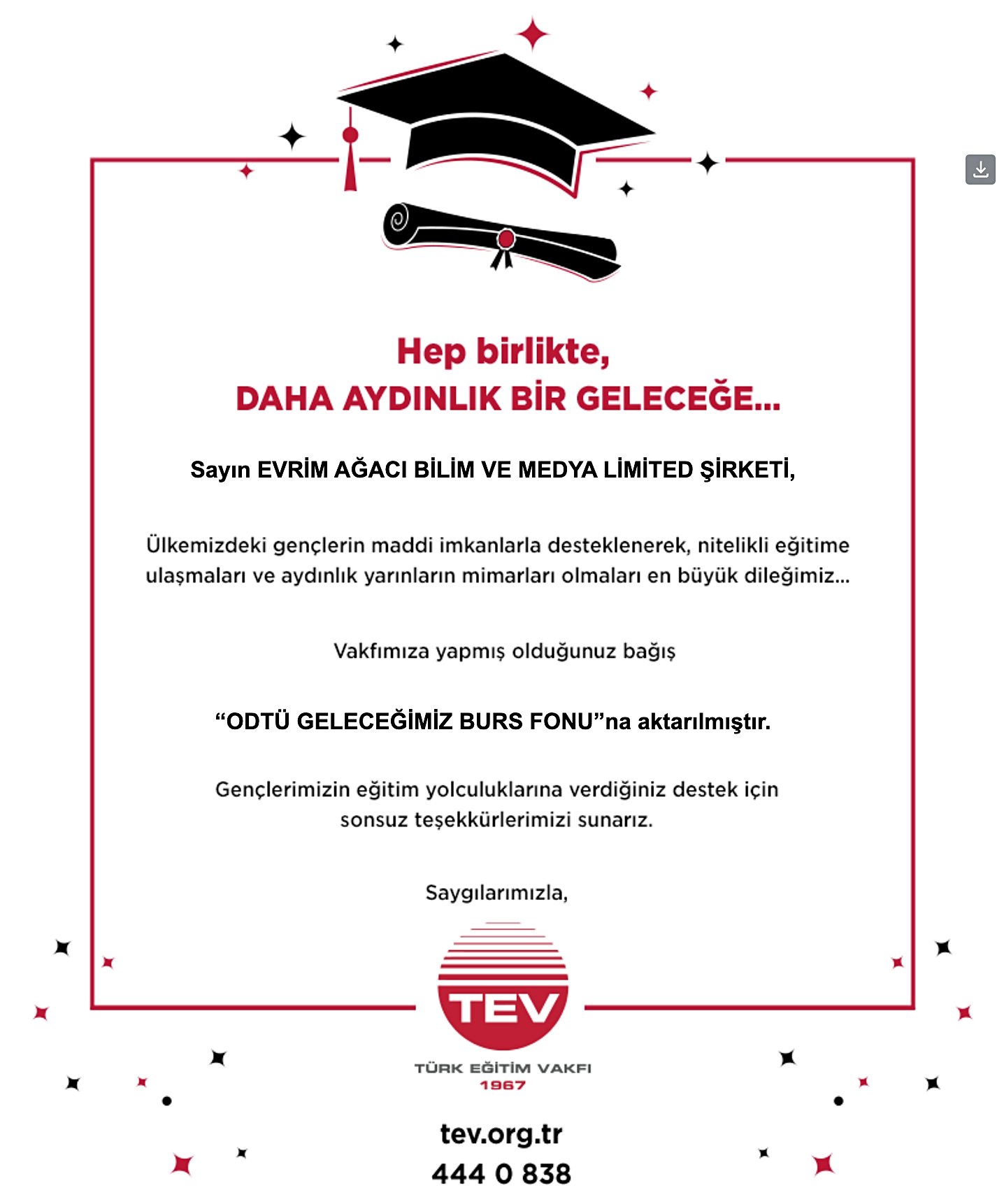 Kıymetli hocamız Burçin Ünlü sayesinde etkinliğimizden elde ettiğimiz gelirin bir kısmını Evrim Ağacı ailesi adına Türk Eğitim Vakfı'na bağışladık. ❤️