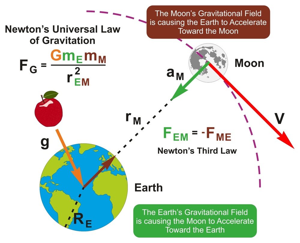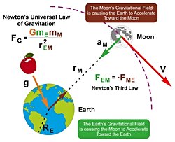 Kütle çekim yasası:  İşte dünyanın etrafındaki tüm uydular bu sayede, yani yer çekimi sayesinde yörüngede kalmaktadırlar. Yörüngedeki uydular sürekli dünyaya düşmeye çalışmakta, ama hızları nedeniyle düşemeden sürekli dünya çevresinde dolaşmaktadırlar.