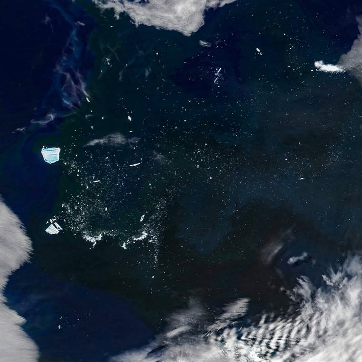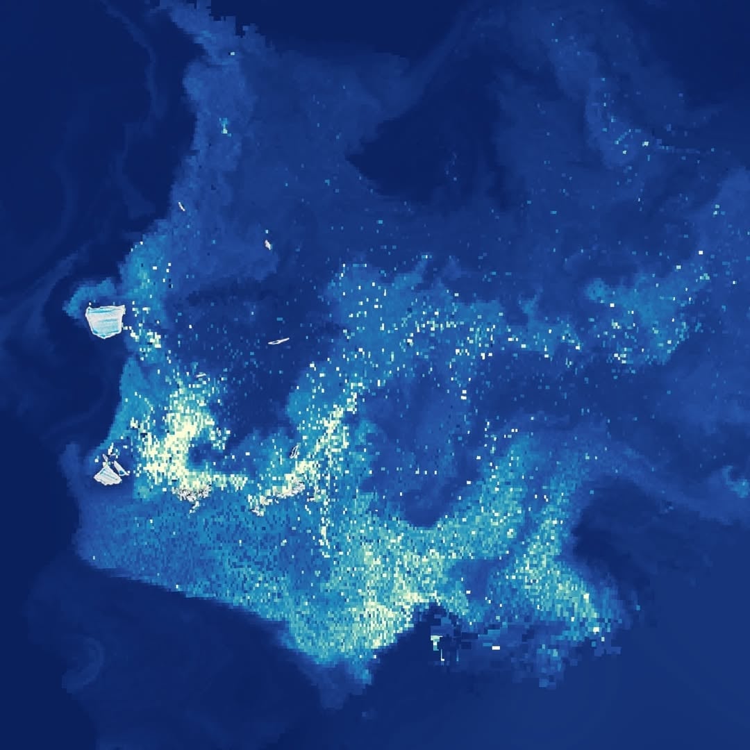 A-23A buzdağının parçalanması okyanusta devasa bir fitoplankton patlamasını tetikledi! NASA ve NOAA Suomi NPP uydusu bu enkazı yakalarken, PACE uydusu fitoplanktonların izi olan klorofil-a yoğunluğunu haritaladı.