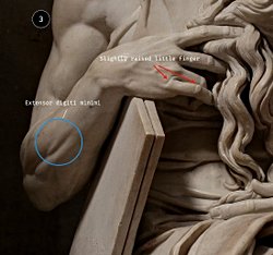 Bu tür bir hassasiyet ve anatomik doğruluğa gösterilen özen Michelangelo'nun olağanüstü sanatsal becerisini ortaya koymaktadır.