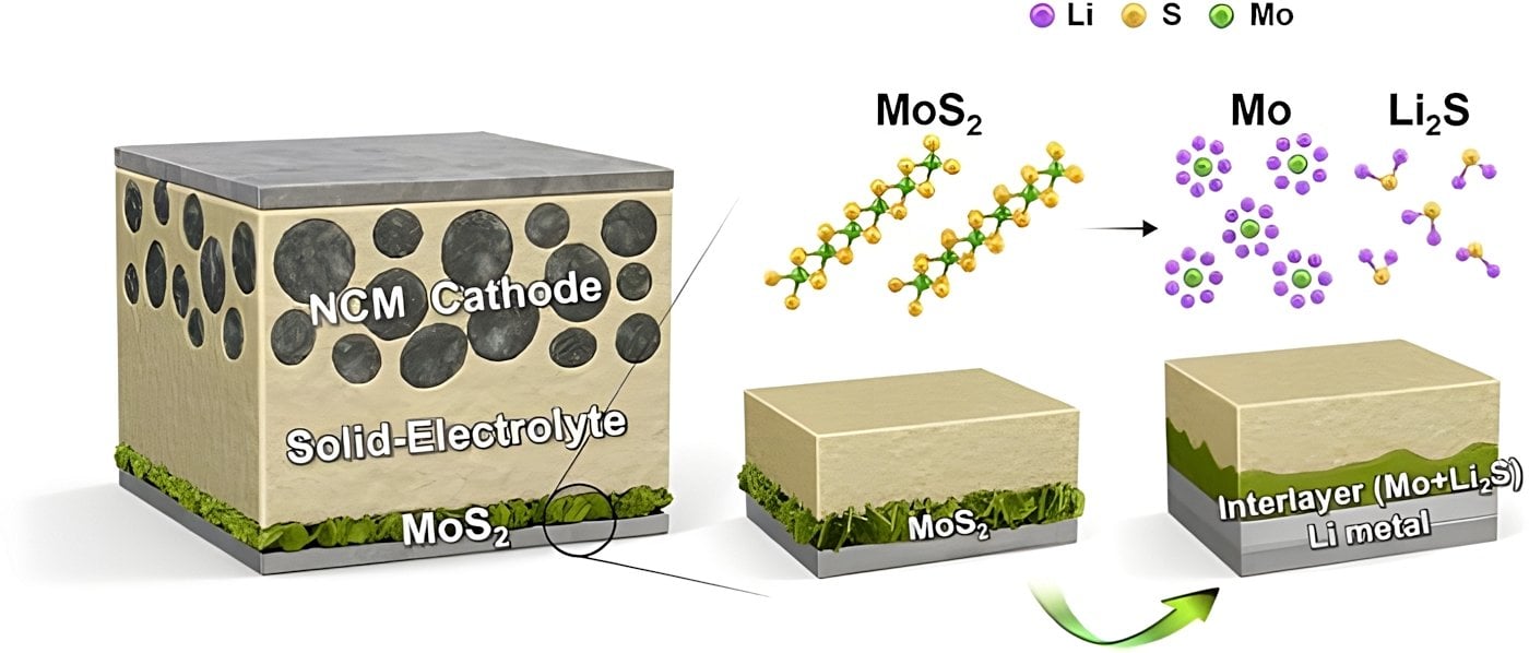 Koreli araştırmacılar, anot-içermeyen katı hal bataryalarında MoS₂ tabakası kullanarak arayüz kararlılığını artırmayı başardı. MOCVD yöntemiyle büyütülen MoS₂ nanoyaprakları, lityumla reaksiyona girerek Mo metal ve Li₂S ara tabakası oluşturuyor. Bu yenilik, kapasitede 1,18 kat artış ve kapasite korunumunda yedi kat iyileşme sağladı. Araştırma, elektrikli araçlar için yüksek performanslı batarya gelişiminde önemli bir adım teşkil ediyor.