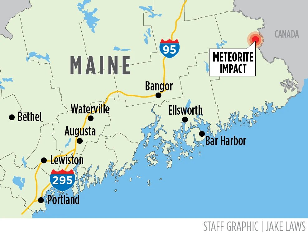 Maine Mineral ve Gem Müzesi, kurtarılan ilk gök taşı için 25.000 $ ödül sunuyor. Darryl Pitt, Cumartesi sabahı geç saatlerde New Brunswick üzerinde parlak bir ateş topunun Dünya atmosferine girdiğini duyunca heyecanlanmadan edemedi. Doppler radarı gökten inen meteorları tespit edince heyecanı arttı. Arama, hevesli avcılar tarafından bulunmayı beklediği kırsal Washington County'de devam ediyor.