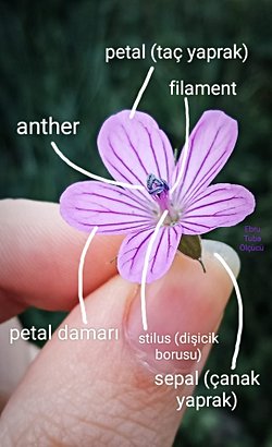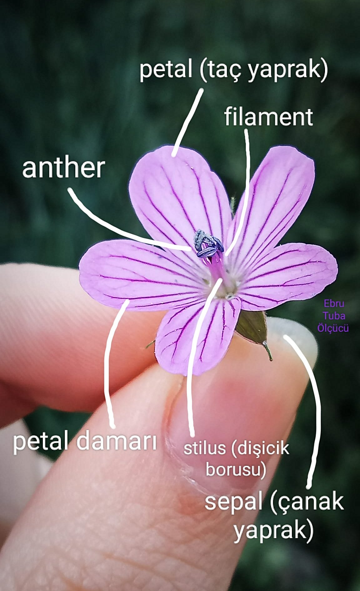 Neredeyse her yürüyüşe çıktığımızda kaldırım ve yol kenarlarında, çayırda, evimizin bahçesinde veya hiç beklenmedik yerlerde çiçekli bitkilerle karşılaşıyoruz. Hiç bir çiçeği yakından inceleme fırsatı buldunuz mu? Dün Geranium palustre'yi (Bataklık ıtırı) gözlerken ve incelerken hepimiz adına çiçekleri daha yakından tanımak için böyle bir şablon yaptım. Bu bir hermafrodit ya da erselik denen, yani erkek ve dişi organların aynı bitkide ve aynı çiçek üzerinde bulunmasına verilen bir bitki tanımı. Herkese bol çiçekli günler!