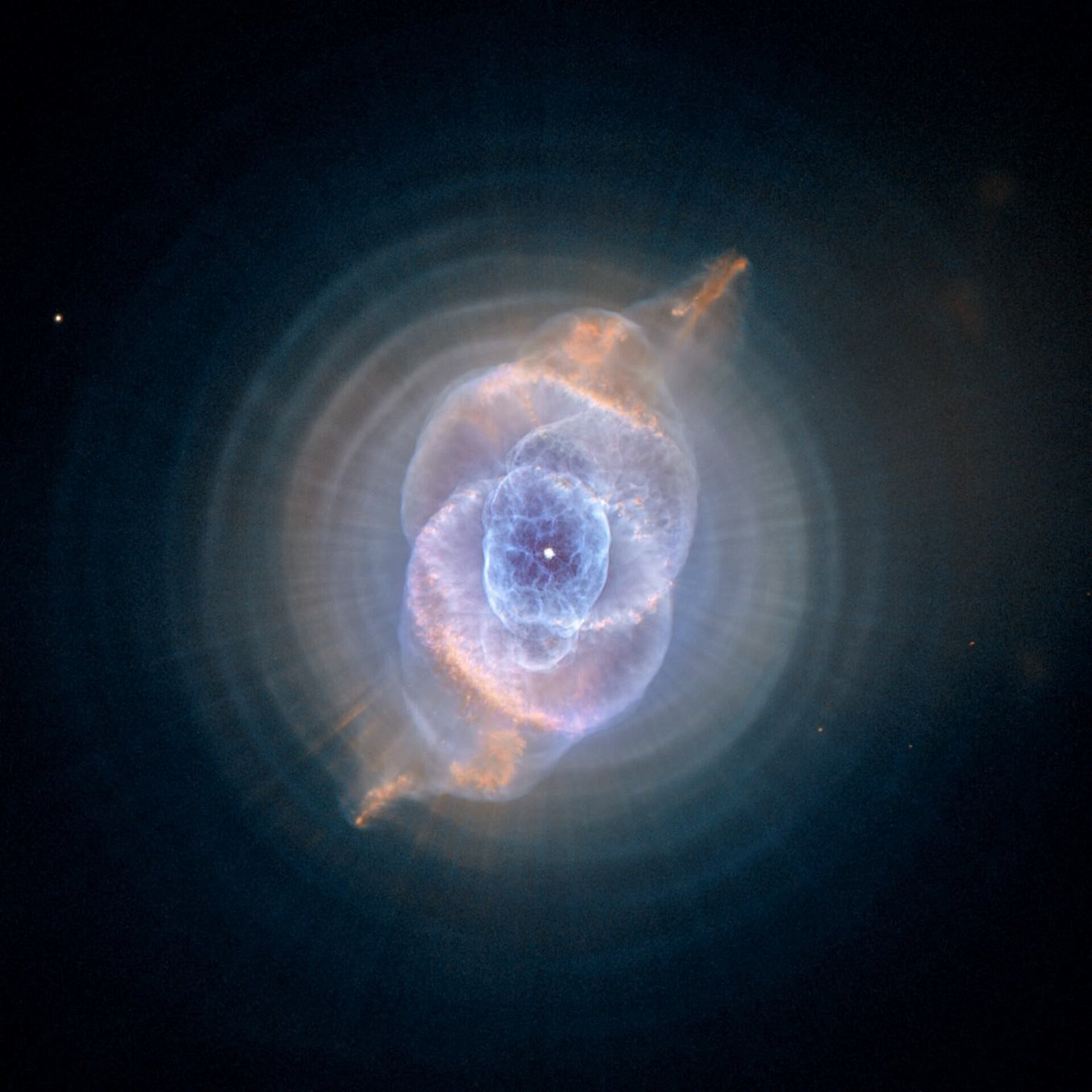 gökyüzündeki en iyi bilinen gezegenimsi nebulalardan biridir. Gezegenimsi nebulalar düşük ve orta kütleli yıldızların ölümü sırasında oluşur. Bu tür yıldızlar öldüklerinde şaşırtıcı bükülmüş şekillere sahip parlak nebulalar oluşturmak için dış gaz katmanlarını nazikçe dışarı atarlar. İç içe geçmiş 'Matruşka bebeği' yapısının ardındaki gizem büyük oranda çözülememiş. Hubble Uzay Teleskobu'u tarafından çekilmiştir.