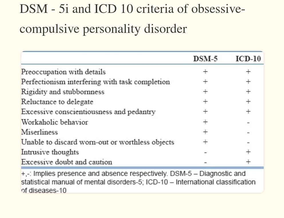 Obsesif kompulsif kişilik bozukluğunun, DSM-5 ve ICD-10 kriterleri.