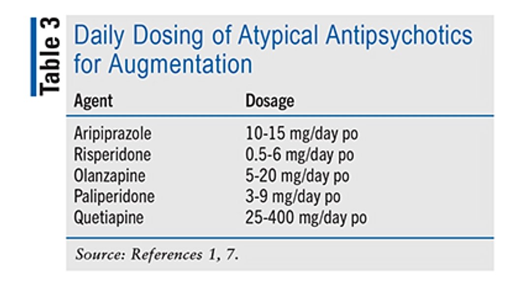OKB için adjuvan tedavisinde kullanılan atipik antipsikotikler ve bunların dozları.