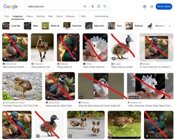 Ölü İnternet Teorisi'ne güzel bir örnek. Google Görseller'de "bebek tavuskuşu" fotoğraflarının neredeyse hepsi yapay zeka üretimi... İnternet gözümüzün önünde can çekişiyor.