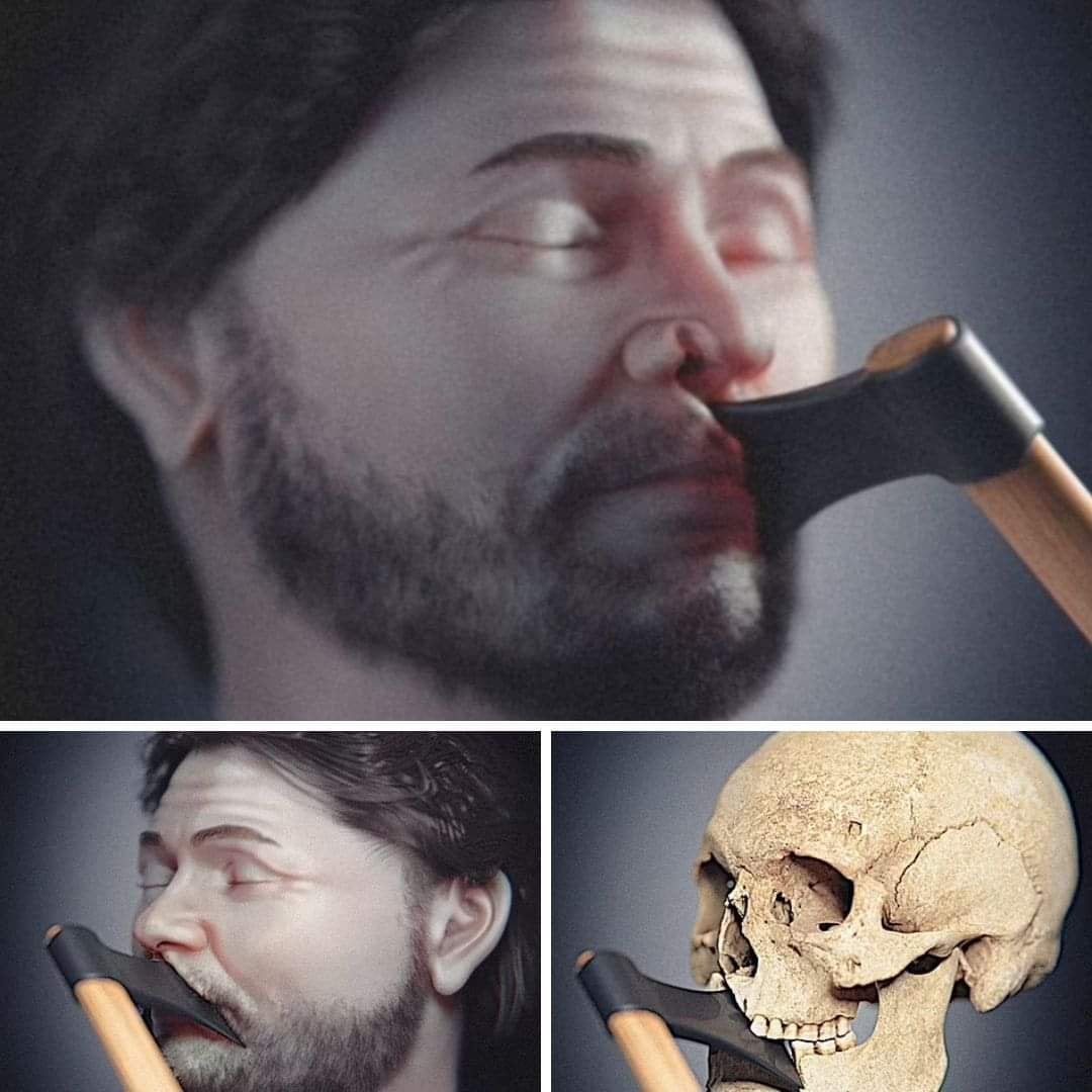 Orta Çağ'da yaşamış ve bir balta darbesi ile ölen bir savaşçının rekonstrüksiyonu...