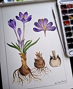 Bugün çizimime konuk bitkimiz: Çiğdem çiçeği (Crocus), süsengiller (Iridaceae) familyasına ait, soğanlı (geofit) bir bitki cinsidir. Türkiye, Crocus türleri açısından dünyanın en zengin bölgelerinden biri olup Anadolu’da çok sayıda endemik çiğdem türü bulunur 💜 bozkırlarda, dağ yamaçlarında, çayırlarda ve orman açıklıklarında doğal olarak yetişir. Genellikle ilkbaharın erken dönemlerinde, bazen de karların arasından çıkarak çiçek açmasıyla bilinir.