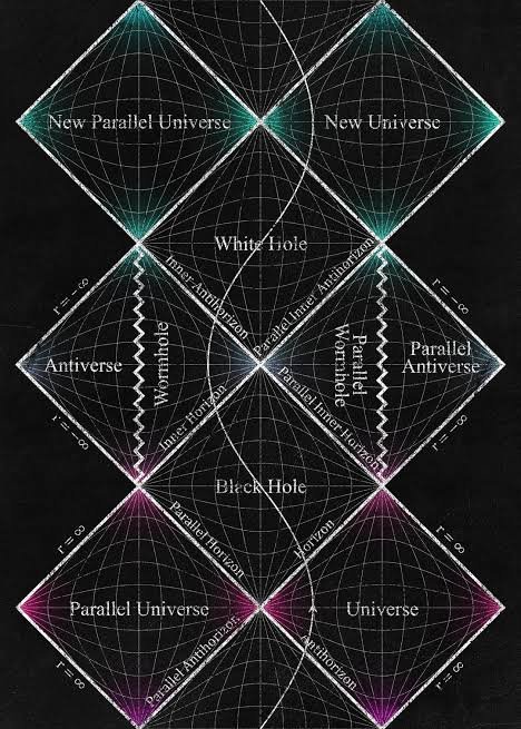 Özel göreliliğin bir yaklaşımı olan Penrose diyagramındaki beyaz delik(white hole) evrenin genişlediği dış çeper(sınır, zar) olabilir mi…Belki evrenin bir gün genişemesi duracak bir karadeliğe çökecek, ve bir beyaz delik çeperi içinde yeniden doğacak. Sadece teorik fizik.