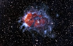 RCW120 adlı yıldız oluşumu bölgesinde sıcak gazın (turuncu) yarattığı basınç, milimetre altı dalga boylarında çekilmiş bu fotoğrafta görüldüğü gibi, çevredeki soğuk malzemenin kümelenmesine yol açar.
