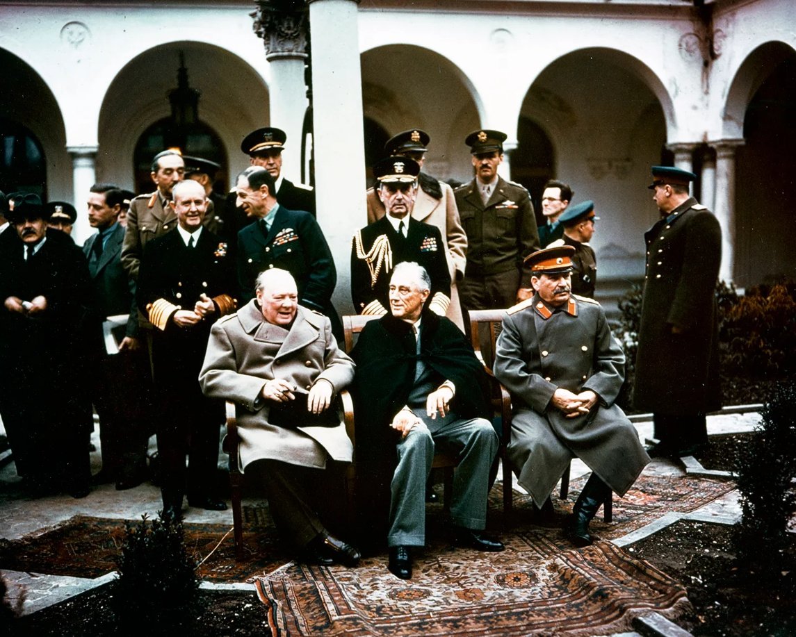 Resmen Şampiyonlar Ligi! Churchill (Birleşik Krallık Başbakanı), Roosevelt (Amerika Birleşik Devletleri Devlet Başkanı) ve Stalin (Sovyetler Birliği Komünist Partisi Genel Sekreteri), SSCB'nin önde gelen tatil yeri Yalta'nın 3 kilometre güneyinde bulunan Livadia Sarayı'nda düzenlenen konferansta. (Ялтинская конференция, 4 Şubat 1945)