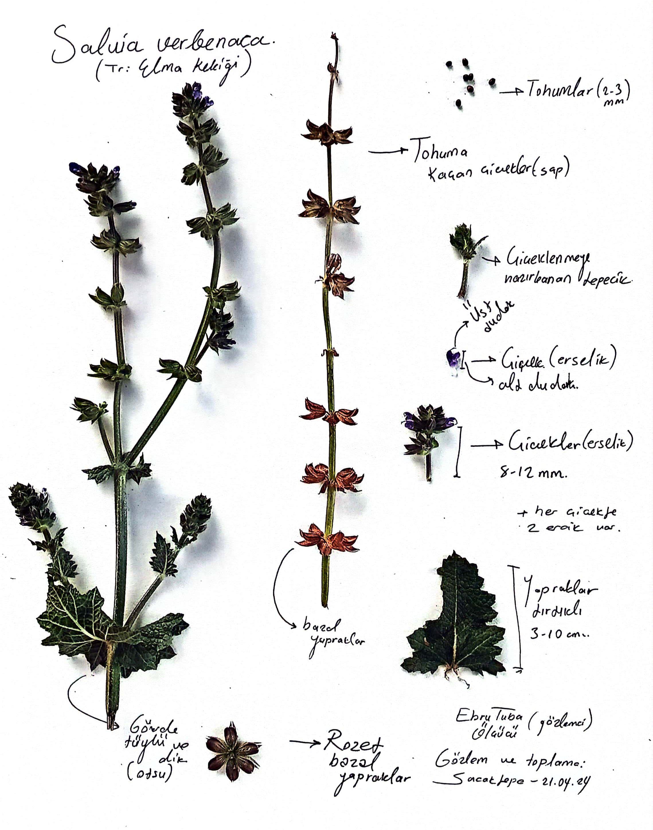 Salvia verbenaca'yı bugün araziden topladım ve daha yakından tanımamız için üzerinde gösterim yaparak dijitale aktardım. Muhteşem minik çiçekleri ve yaprak dizilişi ile her zaman ilgimi çekmiştir.