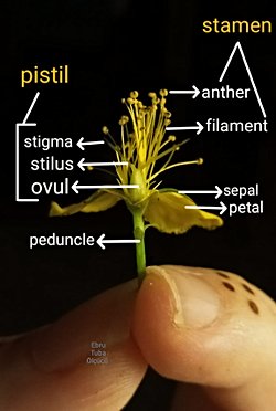 Sarı kantaron bitkisinin çiçeğini ortadan ayırdığımızda, dişi (pistil) ve erkek (stamen) organlarını daha rahat görebiliriz. Erkek ve dişi organını aynı çiçek üzerinde bulunduran bitkilere/çiçeklere ''erselik çiçek'' veya ''hermafrodit çiçek'' adını veriyoruz.