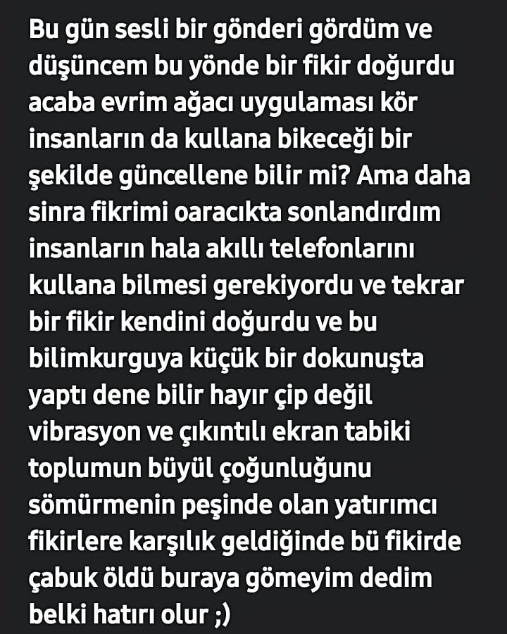 Evrim Ağacı bir bilim platformudur. Dolayısıyla aklınızdan geçen her şeyden ziyade, bilim veya yaşamla ilgili olabilecek düşüncelerinizle ilgileniyoruz.