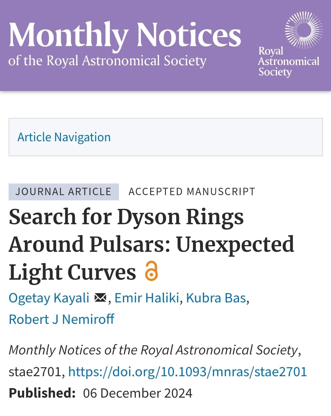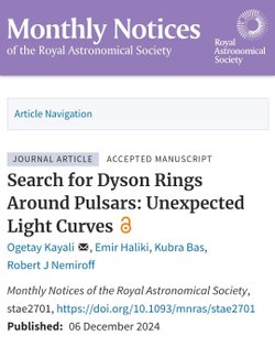 SETI (Dünya dışı akıllı yaşam arayışı) araştırmalarının çok uzun zamandır sonuç vermemesi nedeniyle geleneksel bakış açımızı değiştirmemiz gerekliydi. Uzun soluklu bir çalışmamız olan ve olası bir Dyson mega yapısının üzerinde gerçekleşebilecek süperlüminal hareketlerin öncül sonuçlarını açıklayan çalışmamız, uzay bilimlerinin en prestijli dergilerinden MNRAS tarafından kabul edildi.