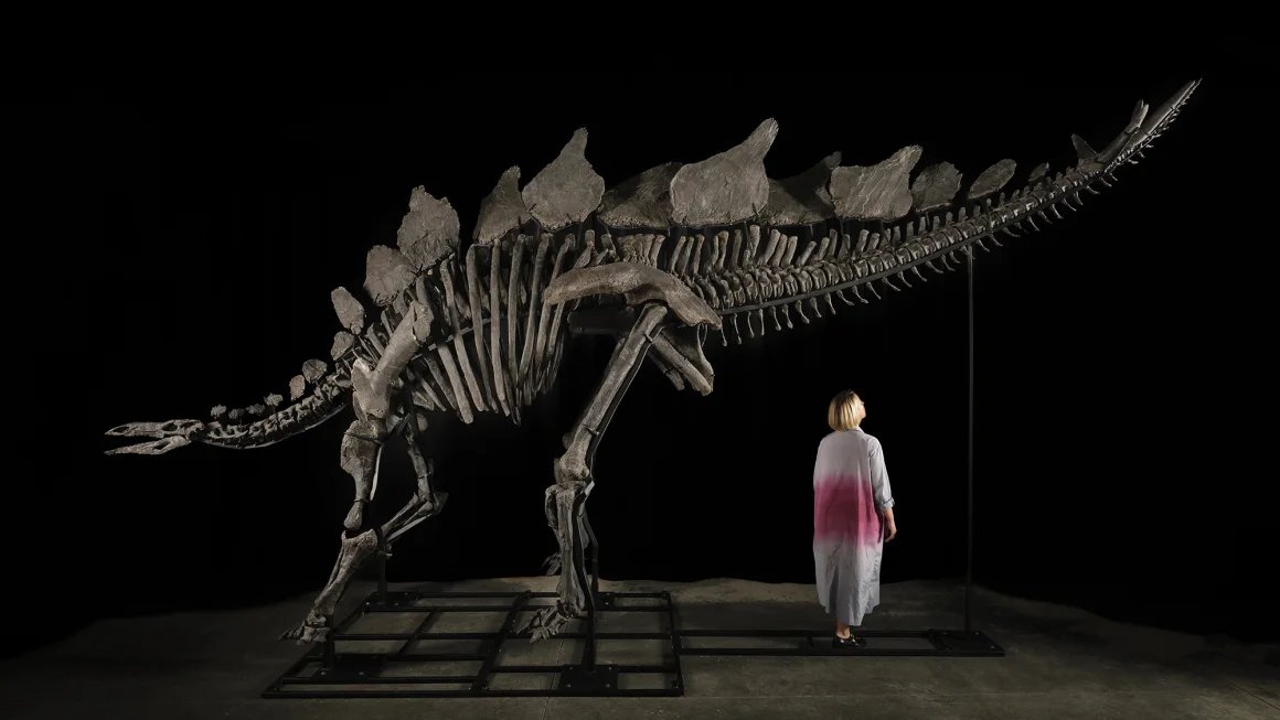 New York’ta gerçekleştirilen bir açık artırmada, bir Stegosaurus iskeleti 44,6 milyon dolara satılarak bugüne kadar açık artırmada satılan en değerli fosil oldu. Sotheby’s müzayede evi, “Apex” lakaplı fosilin yedi teklifçi tarafından arandıktan sonra anonim bir alıcıya satıldığını duyurdu. Fosil, 2022 yılında Moffat County, Colorado’da ticari paleontolog Jason Cooper tarafından keşfedilmişti. 3.35 metre boyunda ve yaklaşık 8.23 metre uzunluğunda olan Apex, 319 fosil kemik elemanının 254’üne sahip ve büyük, sağlam bir yetişkin birey olarak değerlendiriliyor. Ayrıca, dinozorun artriti olabileceğine dair kanıtlar var. Fosilin bir müzede sergilenmesi gerektiğini savunan bazı paleontologlara rağmen, yeni sahibi Apex’i bir ABD kurumuna ödünç vermeyi planladığını belirtti.