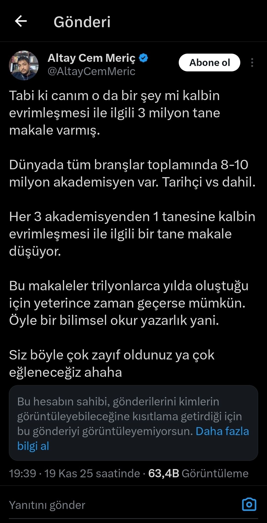 Her zaman olduğu gibi bilim karşıtı güruhlar, evrimi ve bilimi itibarsızlaştırmak, küçük düşürmek ve bilime olan güveni sarsmak adına büyük bir uğraş içindeler, her ne kadar bu insanları kale almak aklı başında insanlar için zaman ve enerji kaybı olsa da yaydıkları zehir insanları ve Türk halkının bilim şuurunu ciddi şekilde zedelemektedir.