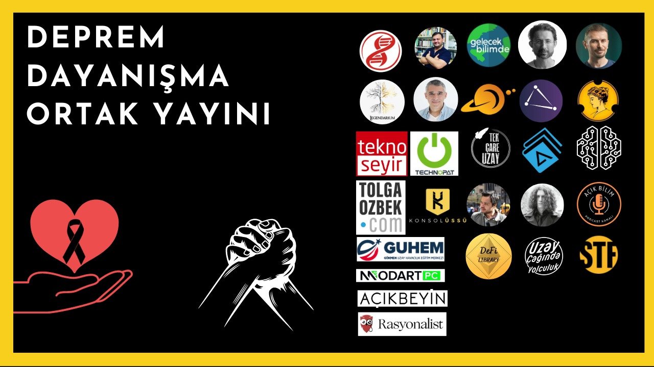 Ülkemizde yaşanan depremler ile ilgili olarak başta bilim iletişimi platformları olmak üzere pek çok kişi, kanal üzerinden ortak ve hafta boyu devam edecek bir dayanışma yayını açıldı. Yayın üzerinden desteklerinizi doğrudan ilgili kurumlara iletebilirsiniz. Yayını ortak paylaşan kanalları ve güncel bilgileri aşağıdaki Evrim Ağacı etkinlik sayfası üzerinden kontrol edebilirsiniz.
