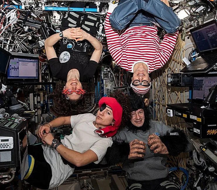Her ne kadar Uluslararası Uzay İstasyonu'nun kapısını hortlaklar, gulyabaniler ya da şaka mı şeker mi yapanlar çalmasa da, yörüngedeki tesiste bulunan mürettebat üyeleri yine de Cadılar Bayramı ruhuna girmeyi seviyor. İster bireysel olarak ister tüm mürettebat olarak bazen ürkütücü, bazen korkutucu ama her zaman yaratıcı kostümler giyerler ve bu kostümler genellikle uzay istasyonunda bulunan malzemelerden tasarlanır.
