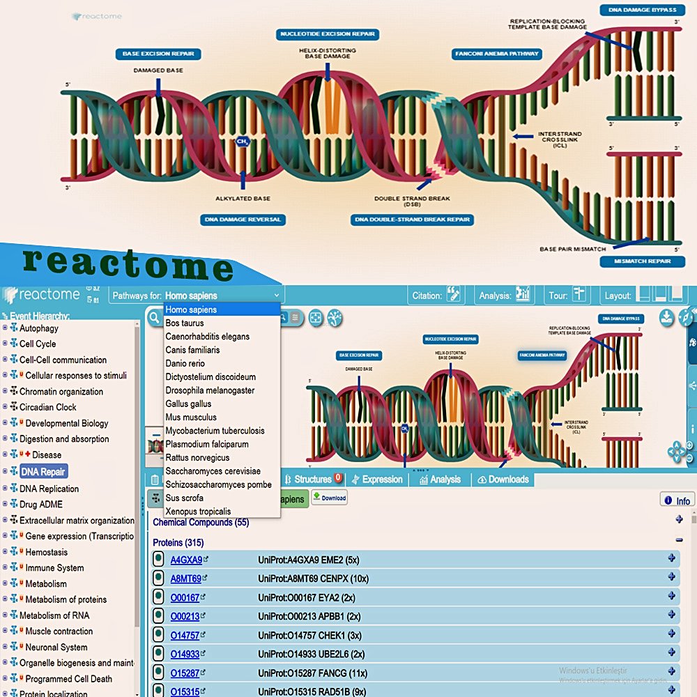 Verileri görselleştirme yoluyla biyolojik süreçlerin entegrasyon ve analizini destekleyen, yeni algoritma yapılarının geliştirilmesine yardımcı olan ve birçok çevrimiçi biyoinformatik kaynaktan beslenen reactome, veritabanı sayesinde bilim insanlarına, araştırmacılara, öğrencilere kapsamlı referanslar sunar. Ayrıca ücretsiz erişim kolaylığı sağlar.