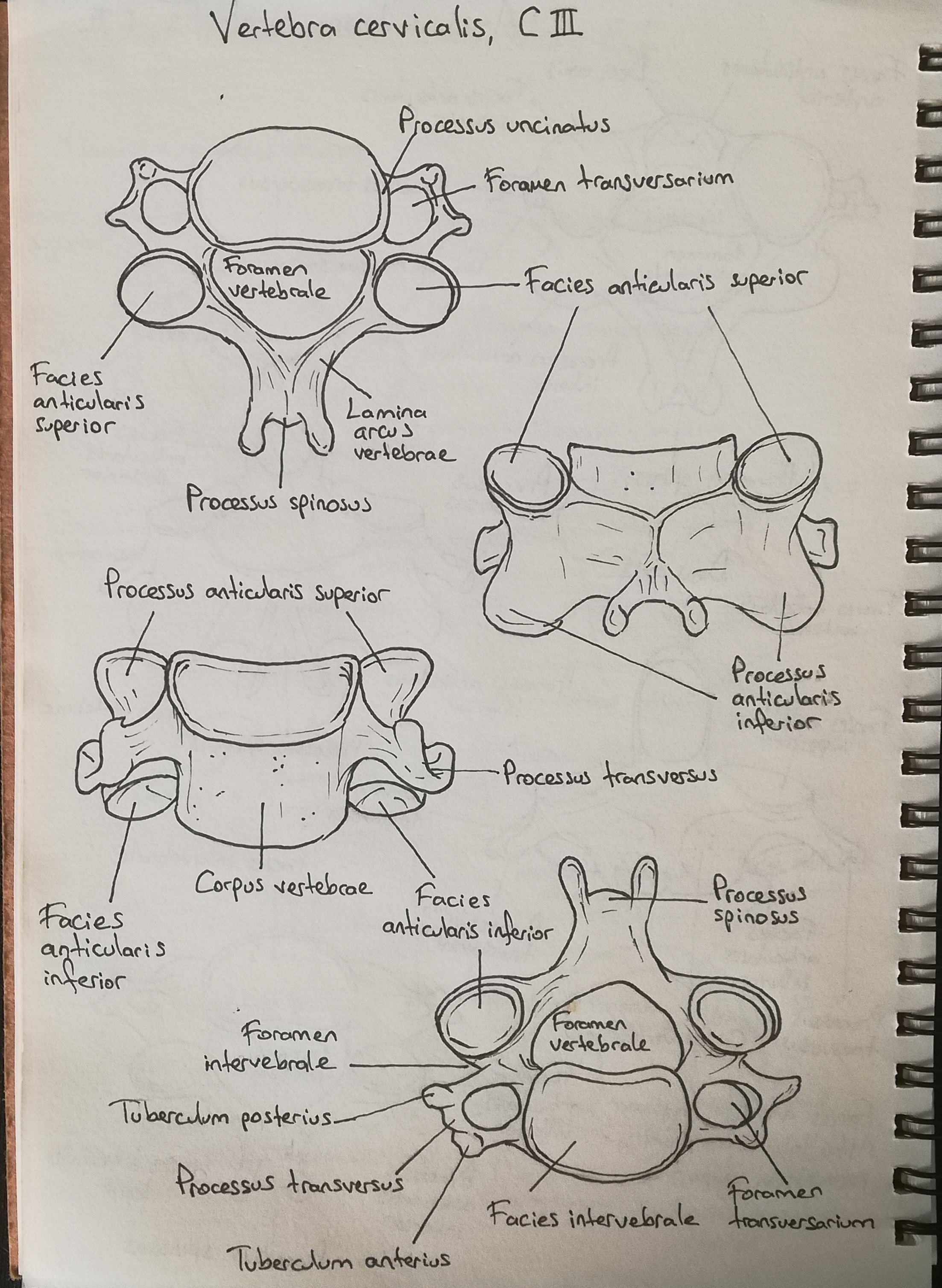 Vertebra cervicalis, C3 detaylı çizimim.