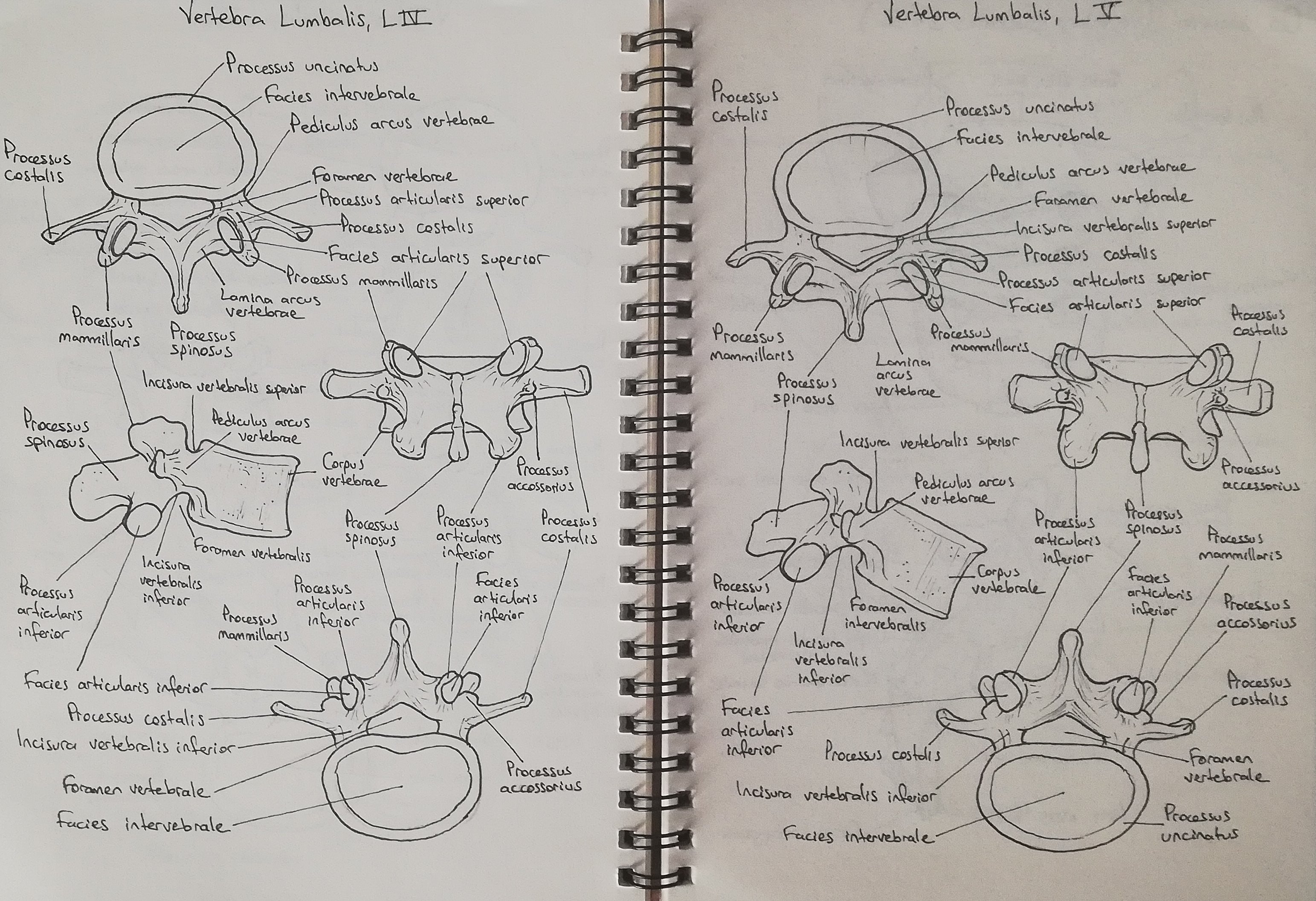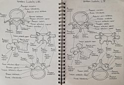 Vertebra lumbalis L4 ve L5 çizimim. L5 'teki facies intervebrale superior L4' ün facies intervebrale inferioru ile eklem yaparken, L5'in facies intervebrale inferior, sacrumun basis ossis sacri ile eklem yapıyor. Böylece vertebralar bitmiş oluyor. :)
