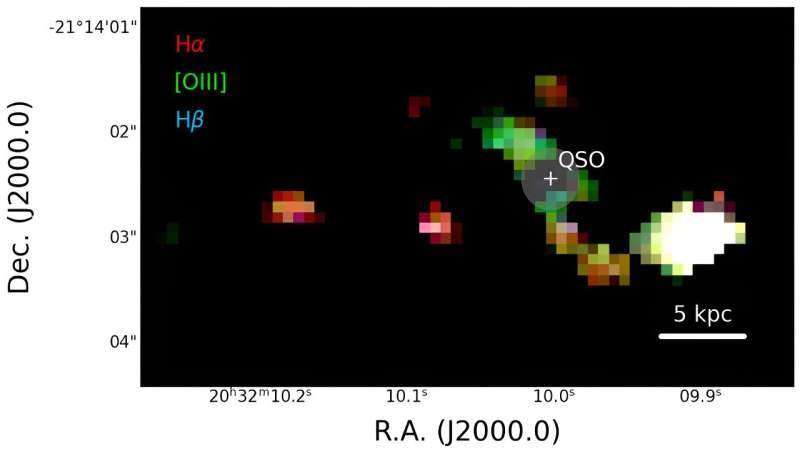 Kuasar gözlemleri, yüksek metalikliğe ve aktif galaktik çekirdeğe sahip ev sahibi galaksi ile düşük metalikliğe ve yıldız oluşumuna sahip uydu galaksileri arasındaki farklılıkları ortaya çıkardı. Sistem merkezindeki süper kütleli kara deliğin kütlesi yaklaşık 2 milyar güneş kütlesi olarak belirlendi ve hem kuasarın hem de çevresindeki galaksilerin sürekli büyüdüğü doğrulandı.
