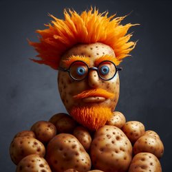 Yapay zekaya patatesten bir adam çiz, saçları turuncu olsun ve ayrıca bir de gözlük tak derseniz?