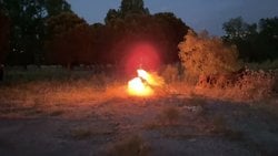 Yaptığım TVC kullanan bir model roketin son uçuşundan bir kare. Patladı! :)