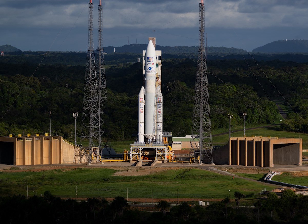 Avrupa'nın bir Ariane 5 roketiyle Jüpiter'e yaptığı ilk görevin kalkışı, Perşembe günü Fransız Guyanası'nda fırlatma sahasındaki yüksek yıldırım riski nedeniyle temizlendi ve JUICE uzay aracının keşif yolculuğunun başlaması Cuma gününe ertelendi. Uçuş öncesi son bir hava durumu brifingi, Fransız Guyanası Kourou'daki uzay limanı üzerinde yüksek bir yıldırım riskini gösterdi.