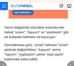 TDK neden sürekli kelimelerin yazılışını değiştiriyor merak ediyorum fakat bunu doğrulayabilecek bir kaynak yok.Özellikle belli bir sınıf kademesini bitirmediyseniz her yıl 100 tane kelime yazıyoruz.Türkçe yerinde duruyor,kelimeler değişiyor? "Yeşil zeytin"den ne istediniz;)