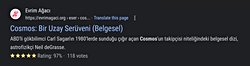 Hemen Eser & Tavsiye Platformumuza uğrayarak izlediğiniz film, dizi, belgesel ve YouTube kanallarına ve okuduğunuz kitaplara oy vermeye başlayabilir, her biri hakkında incelemelerinizi yazarak bilimsever komünitesinin o eser hakkındaki perspektifini yansıtmaya başlayabilirsiniz!