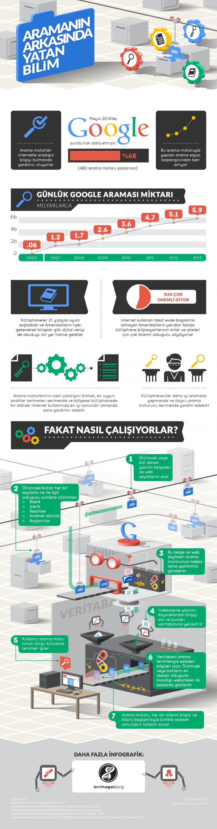Peki artık bir bilim dalı haline gelmiş olan bu "arama" algoritmalarının arkasında yatan bilim nedir? Google, insanlara aradıklarını nasıl bulup gösteriyor? Bu infografikte, bunu çok kısa ve öz bir şekilde gösteriyoruz.