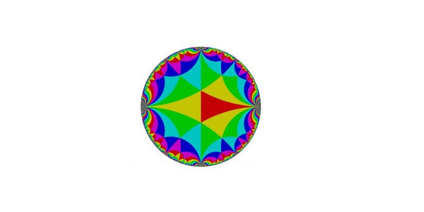 Görüldüğü gibi bu resimde çok fazla simetri ve tekrar vardır. Dahası bu simetrilerin modüler formların simetrilerine benzemesi tesadüf değildir. Bu resim, açık birim disk üzerindeki bir mozaikleme örneğidir. Karoların şekilleri, açık birim diskteki temel alanın kopyalarının şekilleriyle aynıdır.